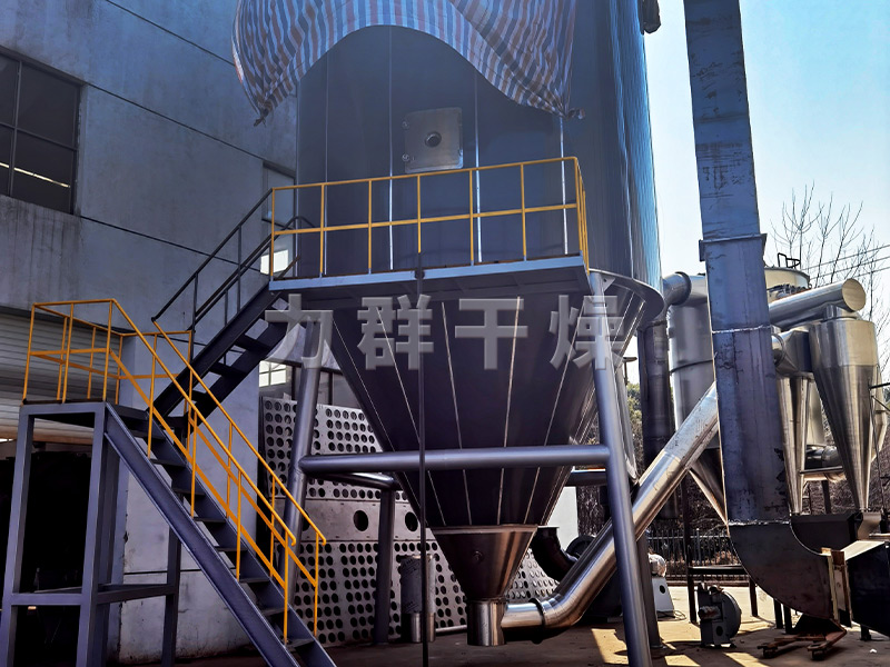 該設備主要由離心霧化系統、熱風循環系統、干燥塔體、氣固分離裝置及自動控制系統構成。核心部件離心霧化器轉速可達15000-30000rpm,將液體破碎成均勻細霧;熱風系統采用精準溫控(進風溫度80-200℃可調),配合塔體特殊結構設計,確保物料在0.5-15秒內完成干燥,有效保留熱敏性活性成分。旋風分離器與布袋除塵器的多級回收系統保證成品得率超95%。